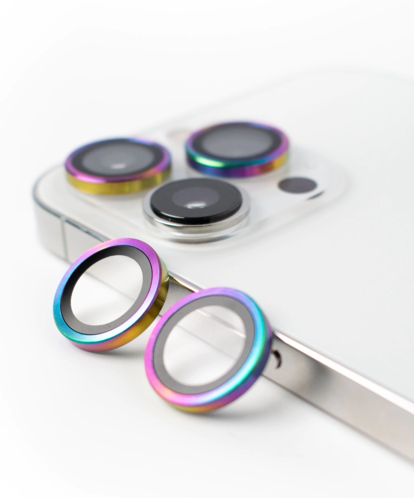 Los mismos estan hechos de Metal en todo el borde, y Glass en la parte de la camara. Son individuales para colocar en cada camara, y vienen en colores distintos.